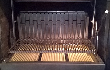 RVS houtskoolgrill van 1200 mm breed x 650 mm diep x circa 900 mm hoog. Voorzien van vuurvaste stenen en 2 as-lades. Rondom geïsoleerd.
